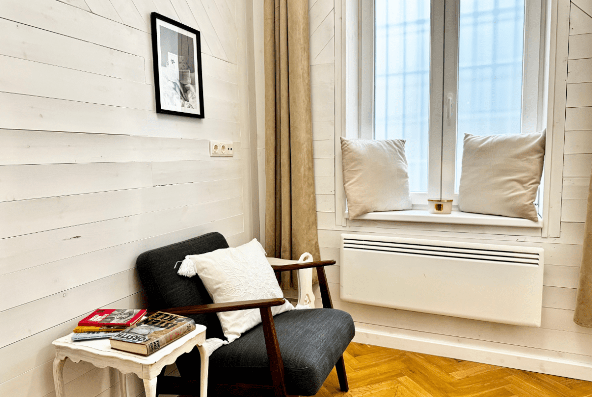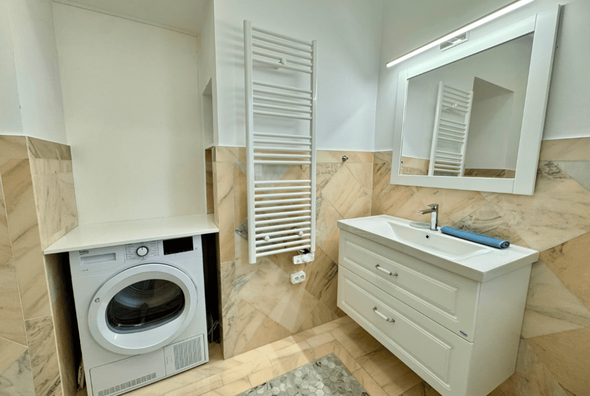 The interior was designed by a well-known Hungarian interior designer, giving the apartment a unique and sophisticated character. A full, high-quality renovation was completed this year, ensuring modern comfort while preserving the elegant atmosphere of the building.